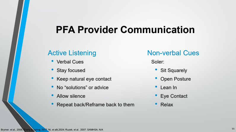 | e) Team Building Initiative: Celeste Peart | Highlights - Celeste did a brief recap of Psychological First Aid(PFA) and a Team Building Exercise, consisting of a Break out: Winter Storm Scenario. Please see more information below: